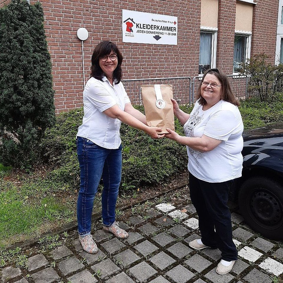 Seit 15 Jahren kümmert sich Christel Schreder ehrenamtlich um die Kleiderkammer im Untergeschoss des DRK Hauses an der Spellener Straße. Ein Anlass bei dem Cornelia Pahl, stellvertretende Geschäftsführerin ihren besonderen Dank persönlich aussprach. Christel gehört dem DRK schon lange an. Angefangen hat alles mit dem Jugendrotkreuz, welches sie ebenfalls lange betreut hat. Seit ihr am 14.07.2006 die Leitung der Kleiderkammer übertragen wurde, ist sie mit Unterstützung einiger anderer Ehrenamtlichen, die gute Seele des Hauses. Gut erhaltene Kleidungsstücke, Bettwäsche, Decken und Schuhe sortieren sie nach Größe, Art und bereiten diese auf und geben sie für einen kleinen Obolus an Menschen weiter, die ihre Kleidung nicht regulär kaufen können.