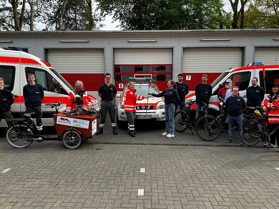 Im DRK-Kreisverband Dinslaken-Voerde-Hünxe e.V. wirken mehr als 300 ehrenamtliche und hauptamtliche Rotkreuzler in den unterschiedlichsten Aufgabenbereichen, um gemeinsam und auf der Basis der Rotkreuz-Grundsätze Menschen in unterschiedlichsten Lebenslagen und Bedarfssituationen helfend zur Seite zu stehen. Die DRK-Bereitschaft Dinslaken hat sich am Freitagabend noch mit dem Fahrrad auf den Weg nach Essen gemacht, um die Fackel dort dem Kreisverband Essen zu übergeben.