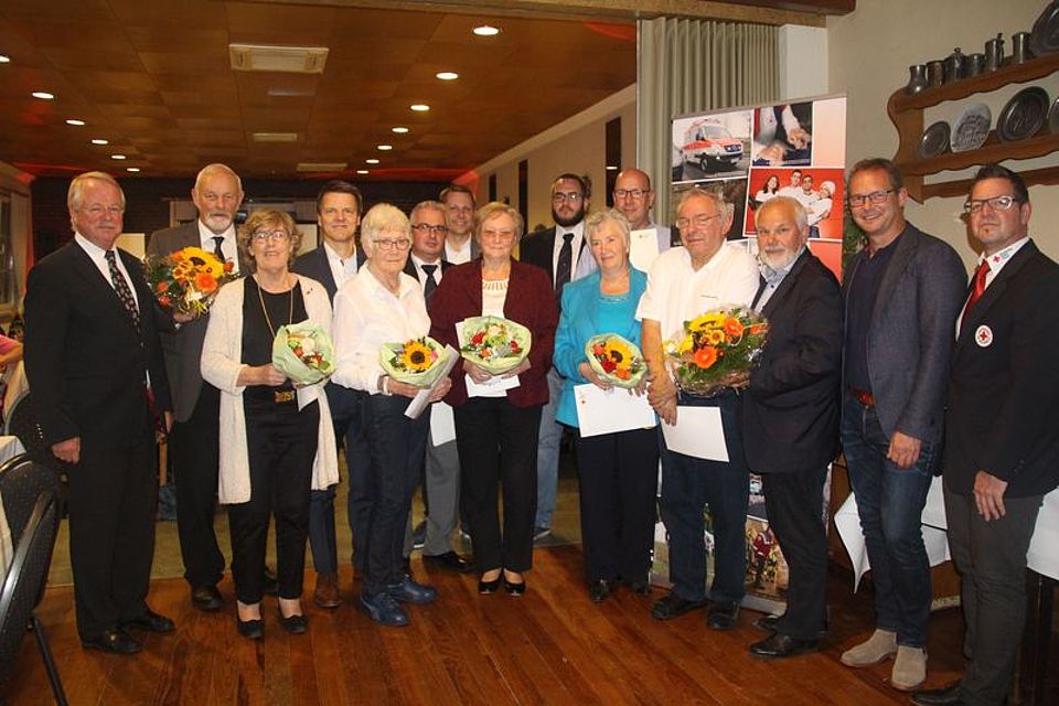 Geehrt wurden auch in diesem Jahr wieder diejenigen, die ehrenamtlich langjährig im DRK-Kreisverband Dinslaken-Voerde-Hünxe mitgearbeitet haben. Besonderer Anlass war, dass der Ausbildungsleiter, Willi Kassen, für seine 35-jährige Mitarbeit mit einer Urkunde und einer Nadel des Kreisverbandes ausgezeichnet wurde. Für ihre 30-jährige Mitarbeit wurden Monika Schollin und Frau Krüßmann, für ihre 20-jährige Mitarbeit wurde Inge Leidereiter geehrt. Für ihre 15-jährige Mitarbeit wurden Helga Winnenburg, Petra Bernds und Herr Dr. Peter Kaup geehrt. Für ihre 10-jährige Mitgliedschaft wurden die Mitglieder Zaneta Belack, Cornelia Pahl, Marcus Makosch, Theo Sondermann und Dr, Kurt Gerritz geehrt. Herr Mathias Kellermann schaut auf eine 5-jährige Aktivität zurück.
